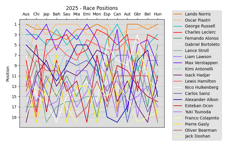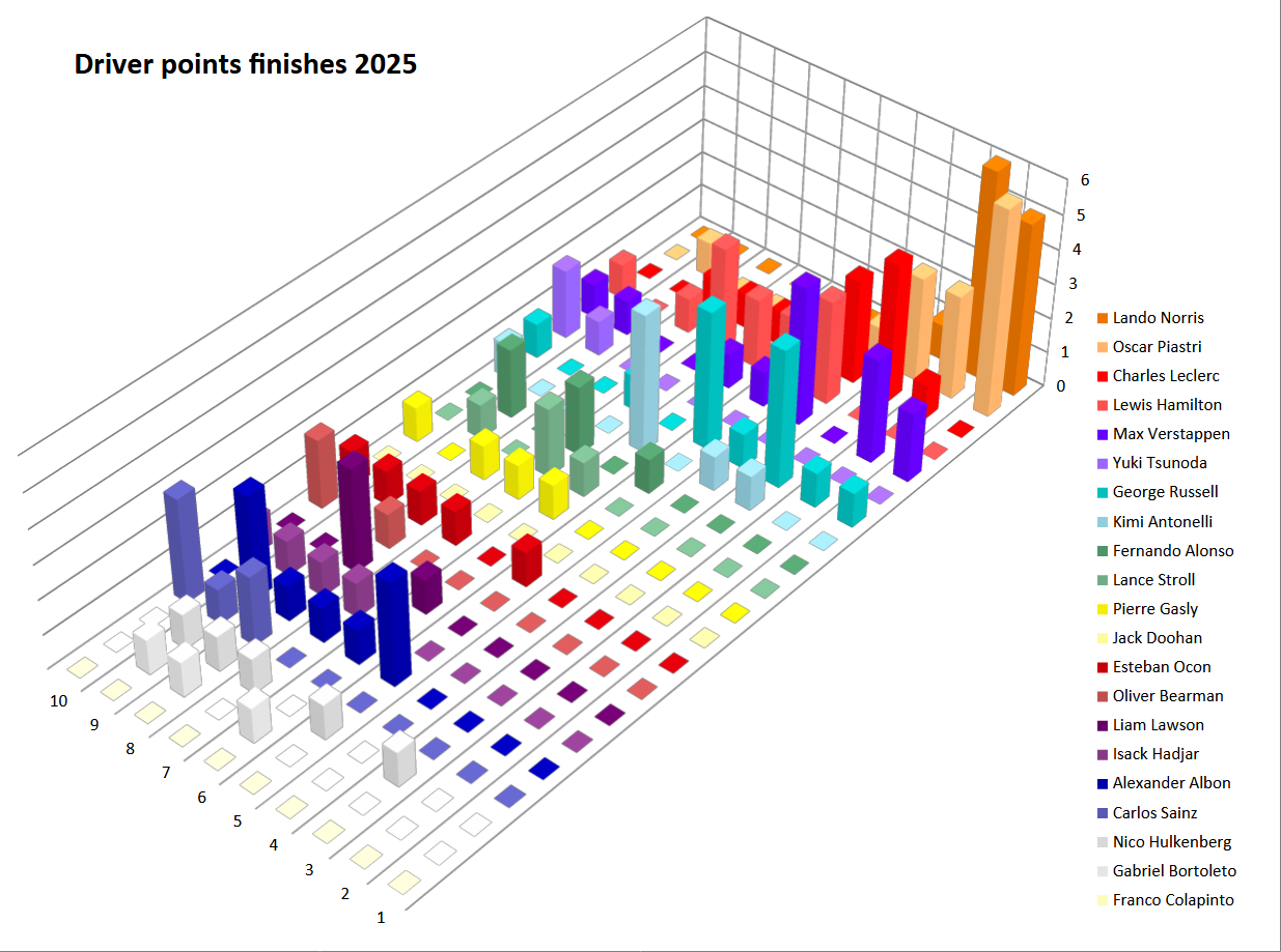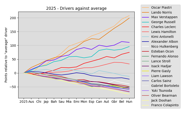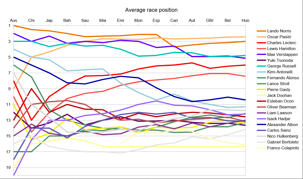 Formula 1 stats - 2025 (after 14 of 24 races)