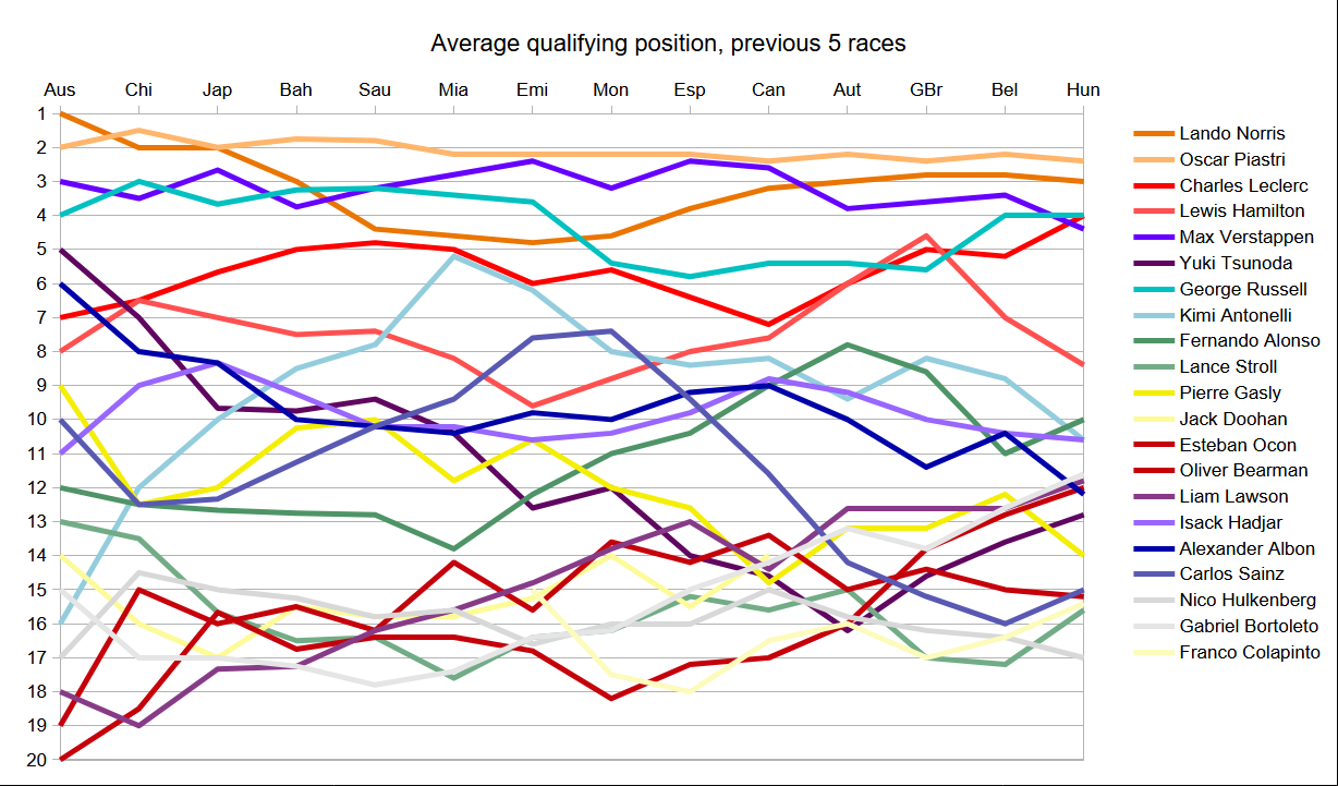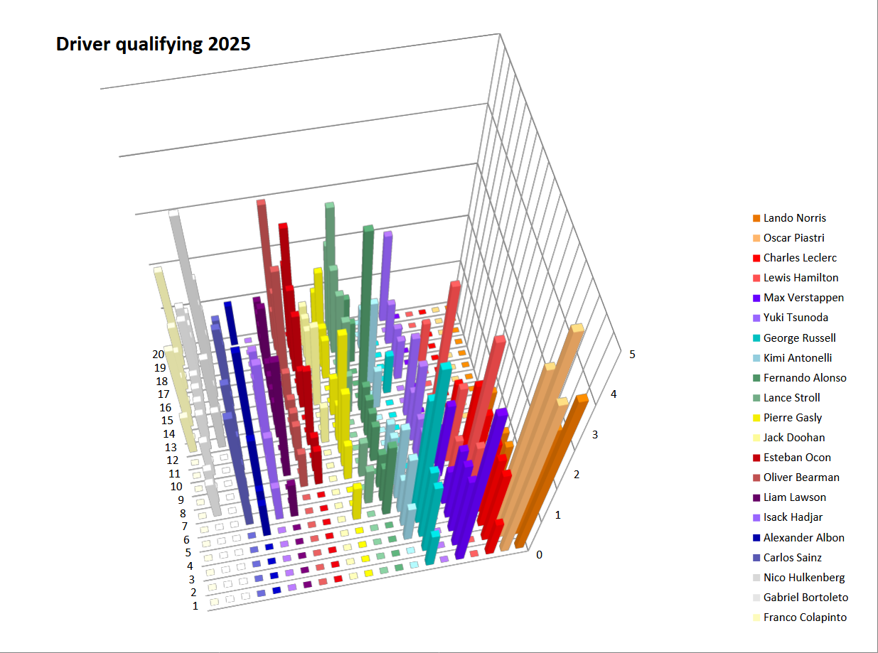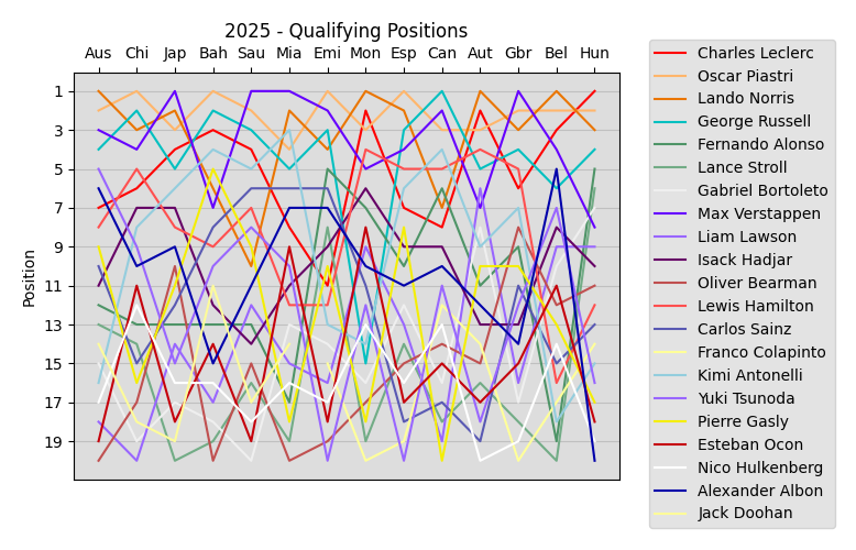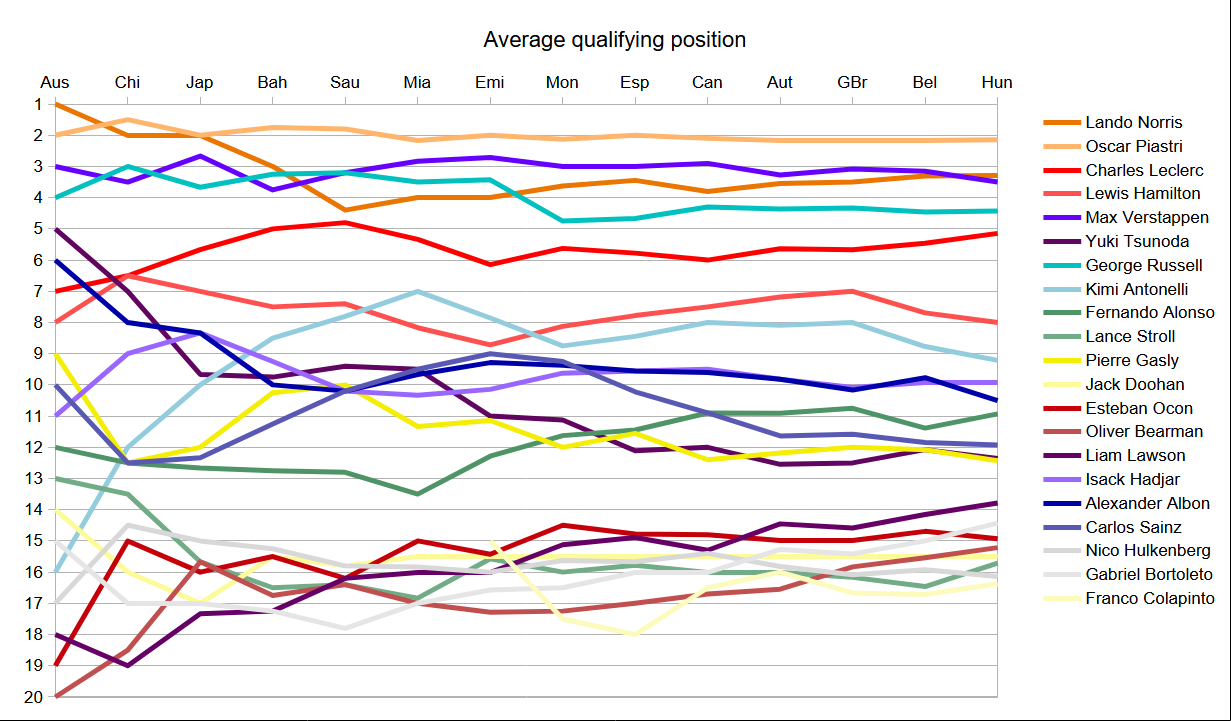 Note: stats are for normal qualifying, not sprint qualifying, and before any grid penalties are applied.