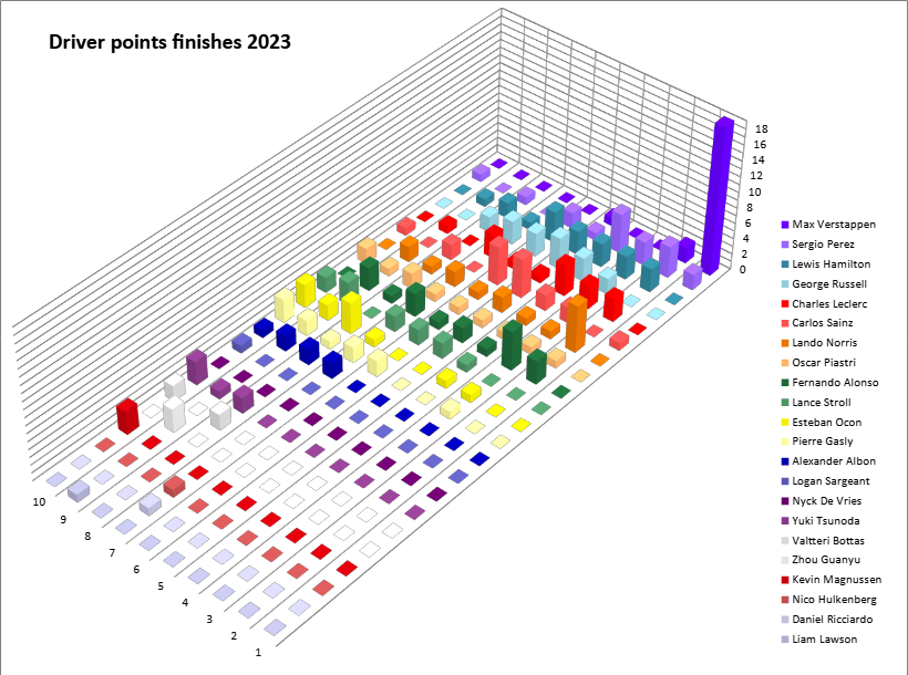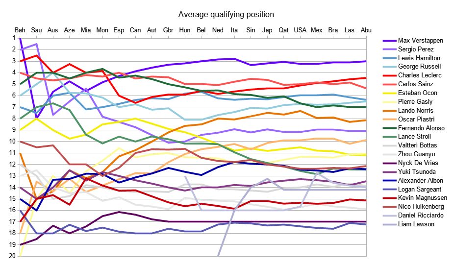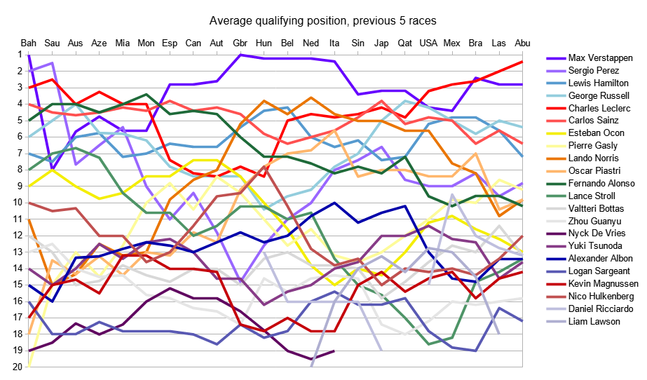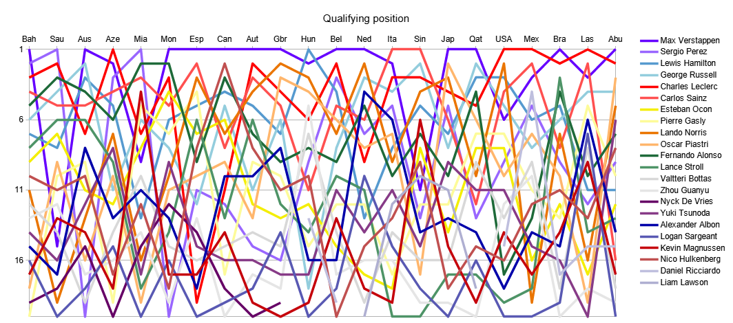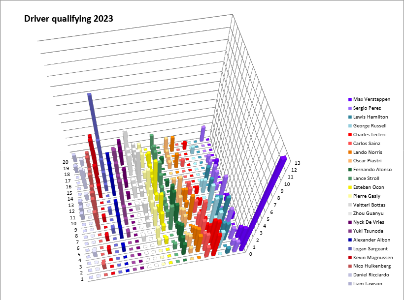 Note: stats are for normal qualifying, not "sprint shootout", and before any grid penalties are applied.