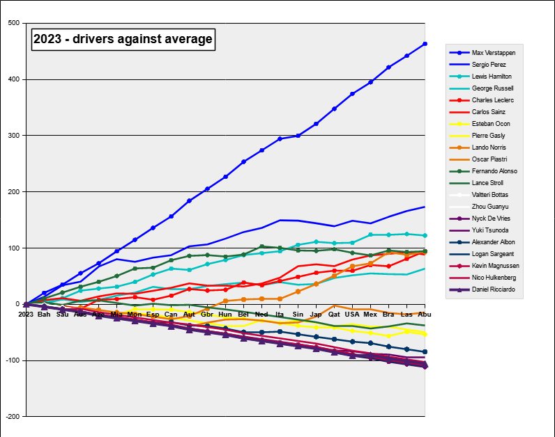 The "average" driver scores 5.1 points (with the variability mentioned above). Below average drivers are on a downward slope.