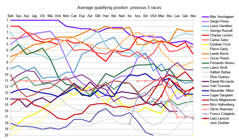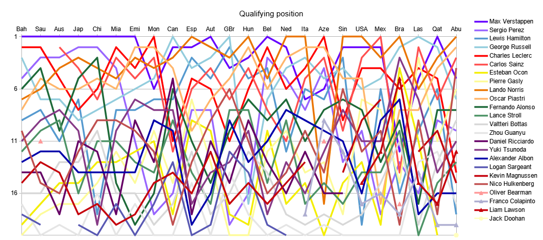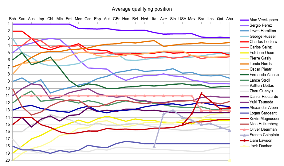 Note: stats are for normal qualifying, not "sprint qualifying", and before any grid penalties are applied.