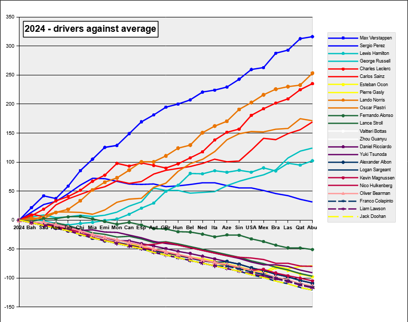 The "average" driver scores 5.1 points (with the variability mentioned above). Below average drivers are on a downward slope.